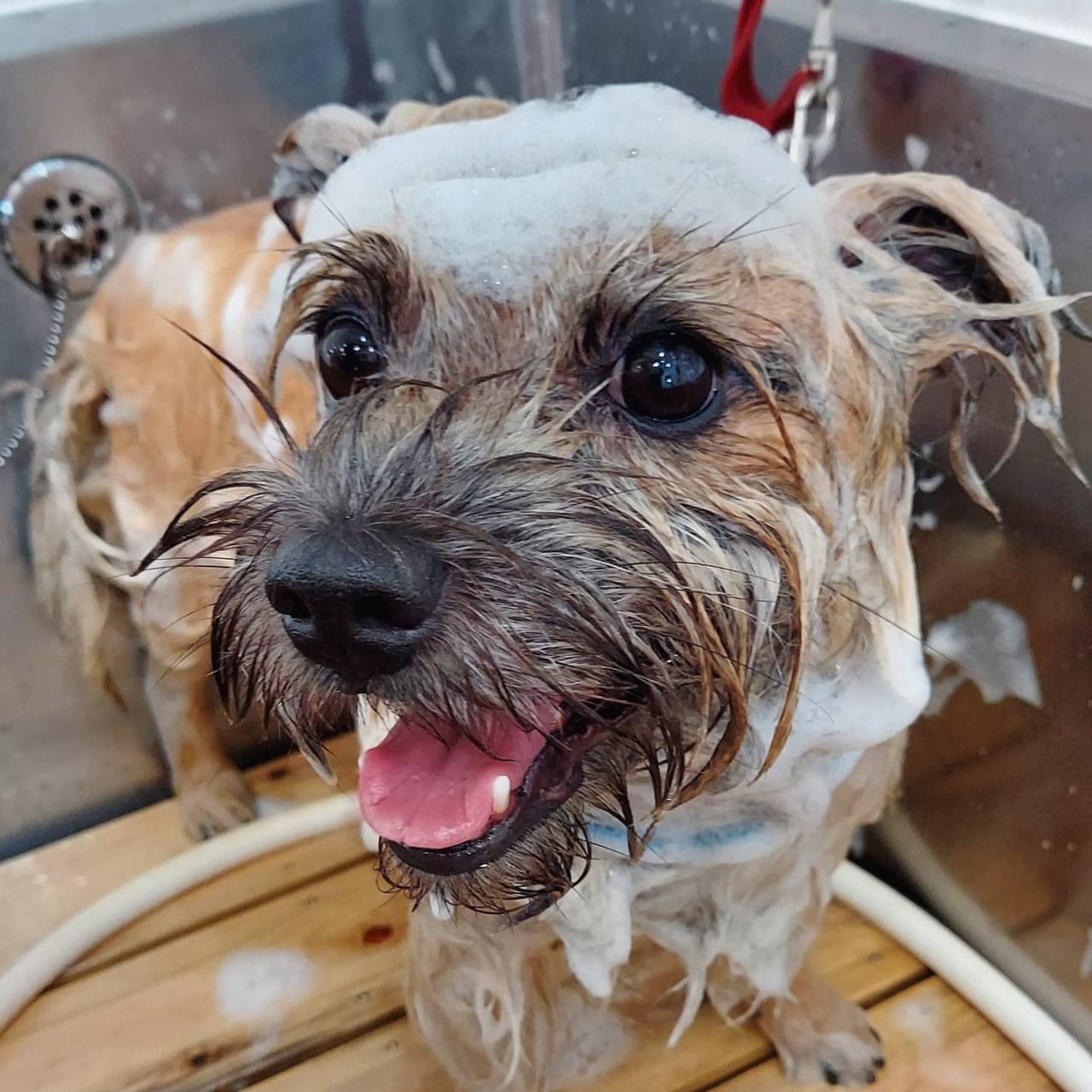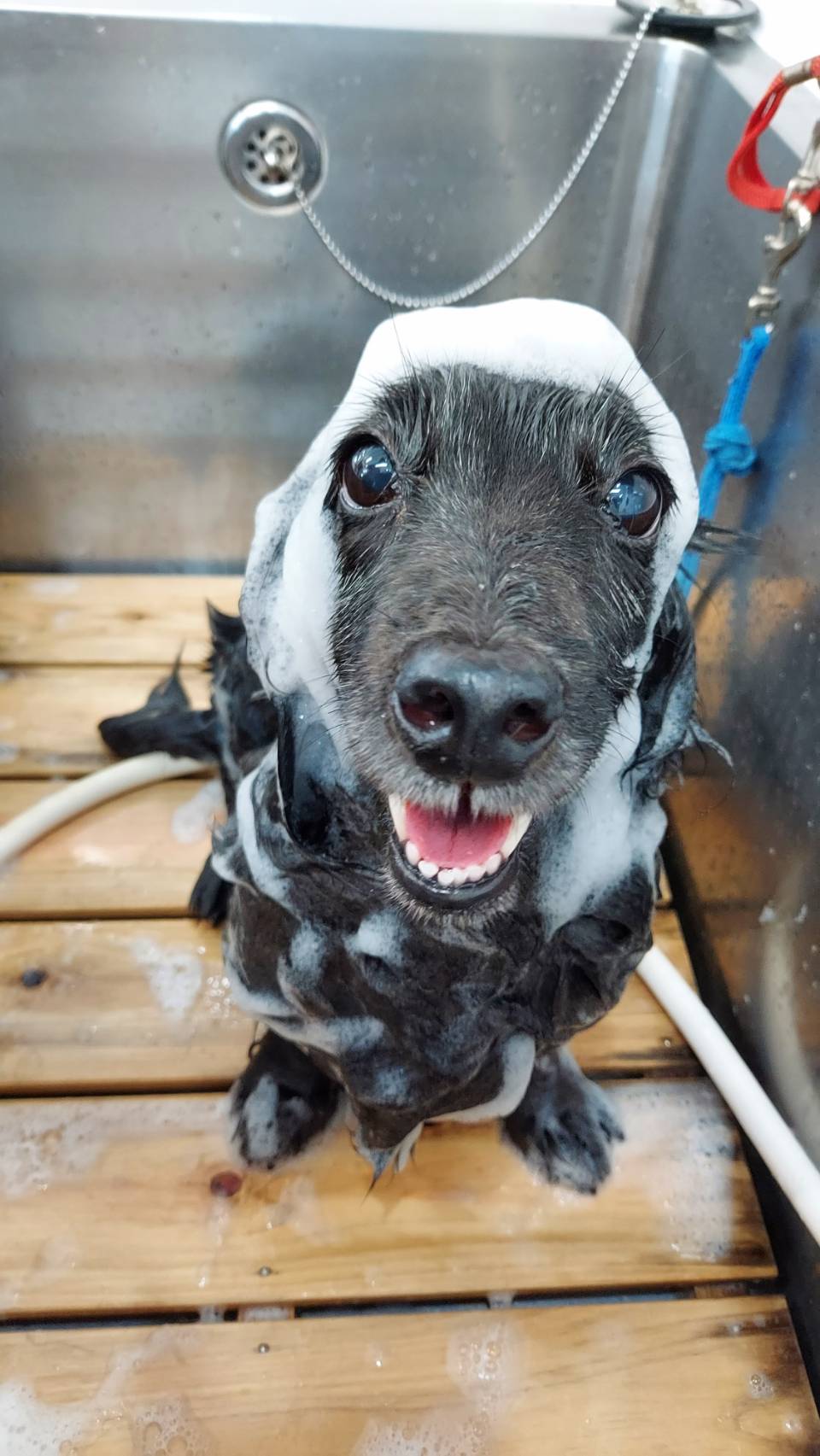 当店はすべてのワンちゃんに、皮膚や被毛をより清潔に健やかに保つ『ナノバブルオゾンペットシャワー』を使用しております。